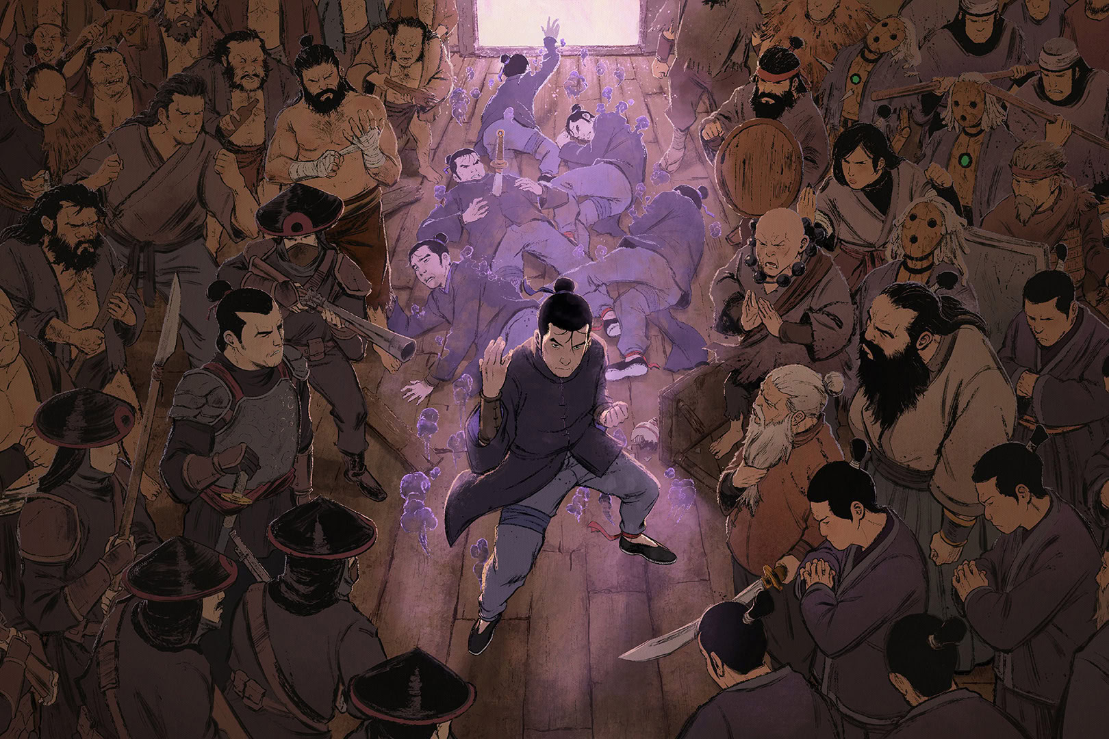 Игра визуально выделяется очаровательным пиксель-артом и динамичными боевыми сценами, которые напоминают постановки из классических фильмов о боевых искусствах. Детальная ручная анимация NPC и разнообразные локации — от деревень до дворцов и лагерей — создают атмосферу восточной романтики и приключений.